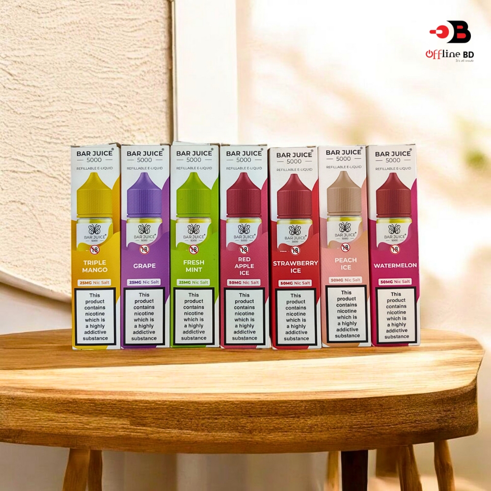 Bar Juice 5000 is a highly searched keyword among vapers in Bangladesh due to its authenticity and premium quality. OFFLINE BD offers 100% genuine Bar Juice 5000 at the best competitive price with nationwide delivery.